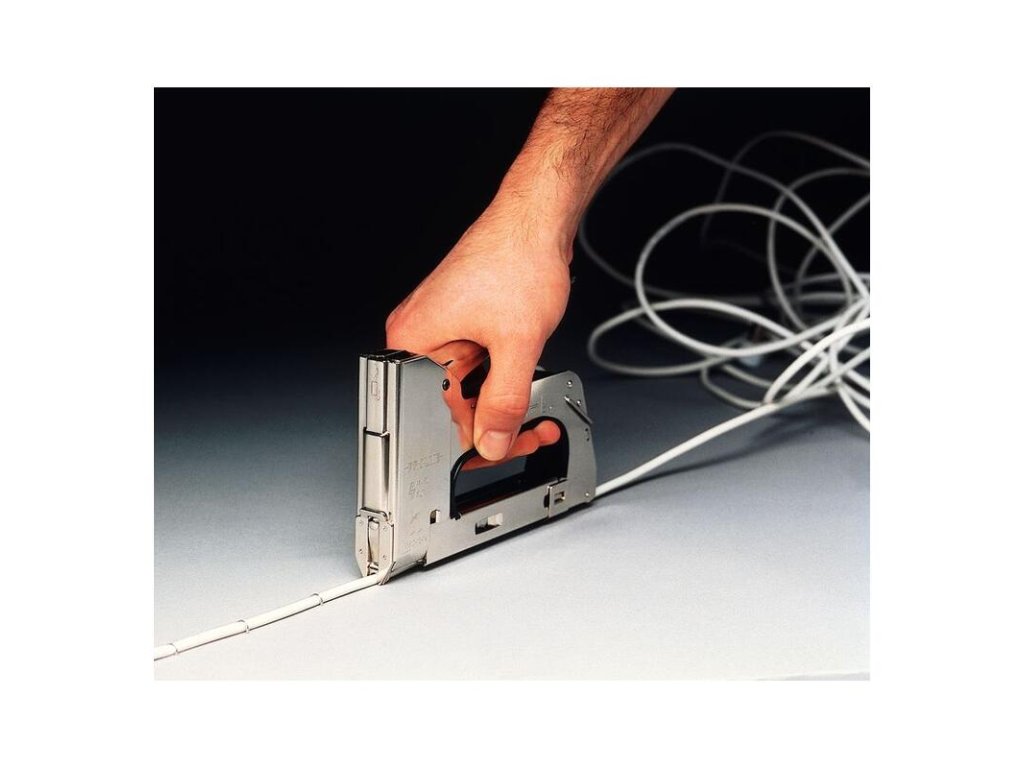 Jedinečná, vynikajúca káblová sponkovačka pre rôzne náročné profesionálne práce a presnú obsluhu. Špeciálne navrhnutá pre nízkonapäťové káble do priemeru 6 mm, sa vyznačuje novou, patentovanou, ľahko stlačiteľnou spúšťou s 3 stupňovým nastavením sily, ktorú je možné nastaviť v závislosti od tvrdosti materiálu alebo priemeru kábla. Táto funkcia taktiež zaisťuje o 40% jednoduchšiu obsluhu R36E. Ideálne na pravidelné, profesionálne použitie pri upevňovaní nízkonapäťových káblov pre reproduktory, telefóny, antény alebo počítače.