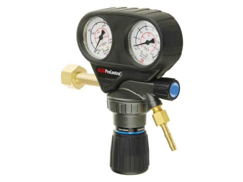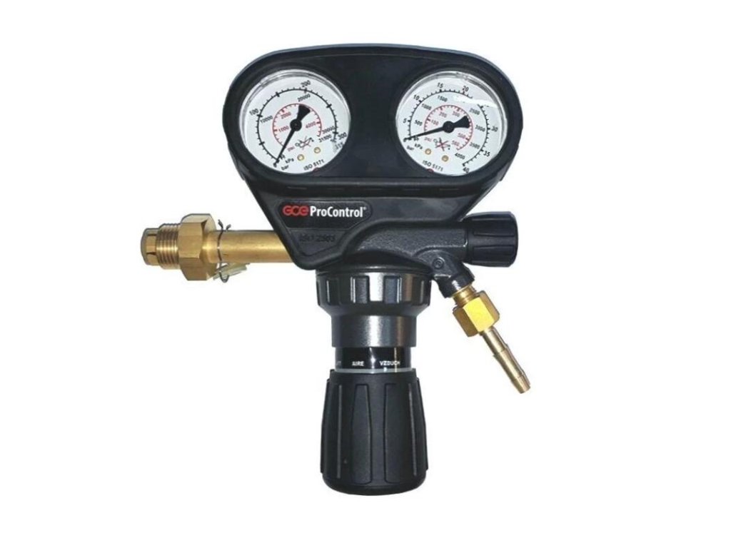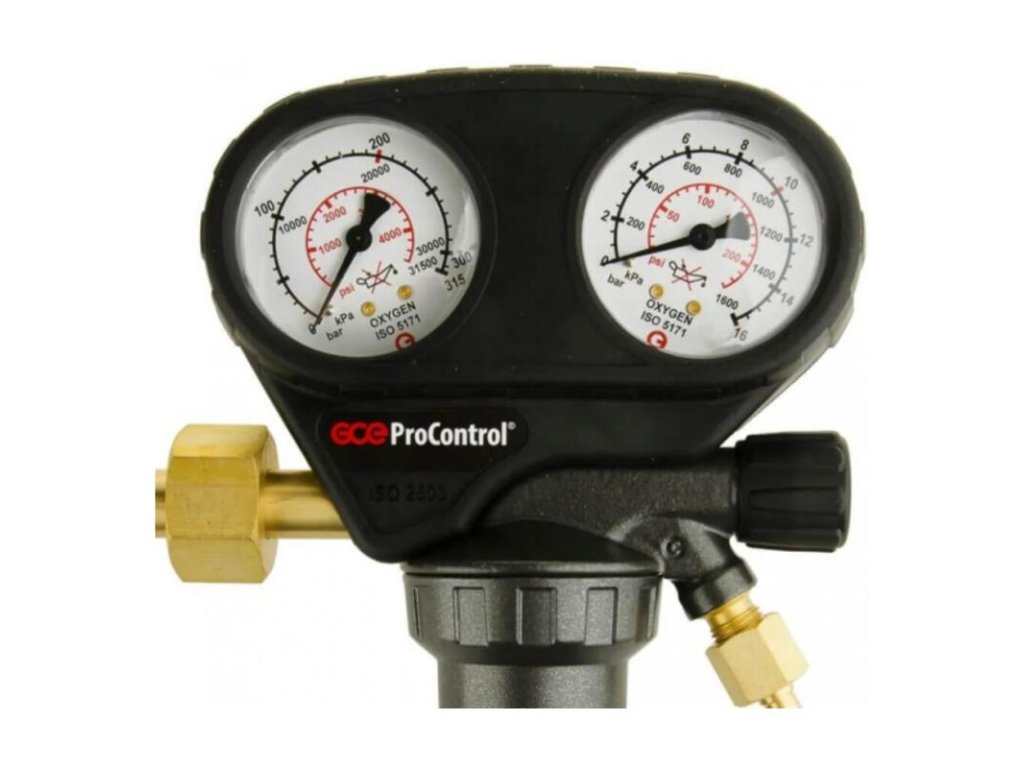 Redukčný Ventil GCE ProControl na Kyslík: perfektný pre profesionálne použitie s vstupným tlakom 200 bar, robustná konštrukcia, presná regulácia tlaku. Splňa normy ISO 2503 a 5171.