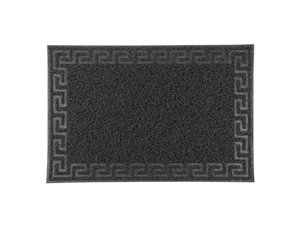 Rohožka MagicHome na čistenie obuvi pri vchodových dverách. Má drsný povrch, vďaka čomu dokáže očistiť obuv bez väčšej námahy. Grécky motív v sivej farbe. Použitie: exteriér. Rozmery: 40x60 cm.