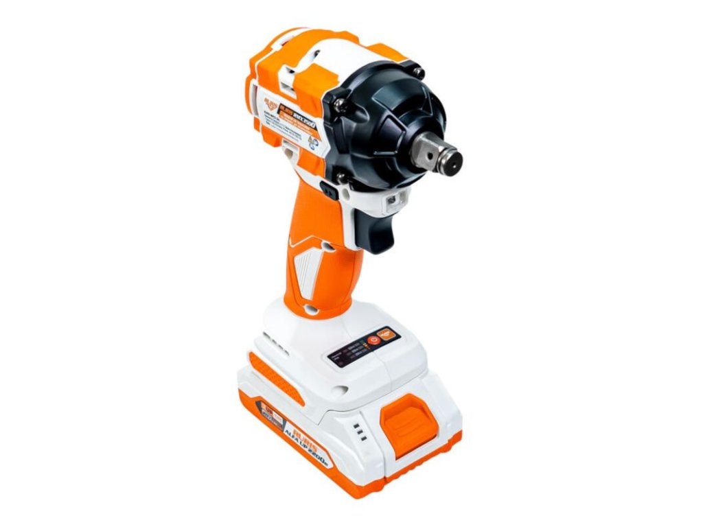 Akumulátorový rázový uťahovač s kompaktným dizajnom disponuje pogumovanou protišmykovou rukoväťou. Maximálny uťahovací moment tvorí 1 000...