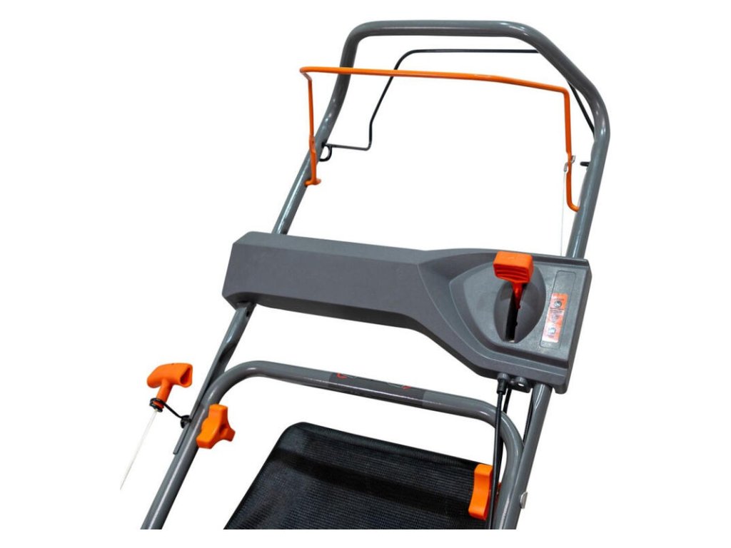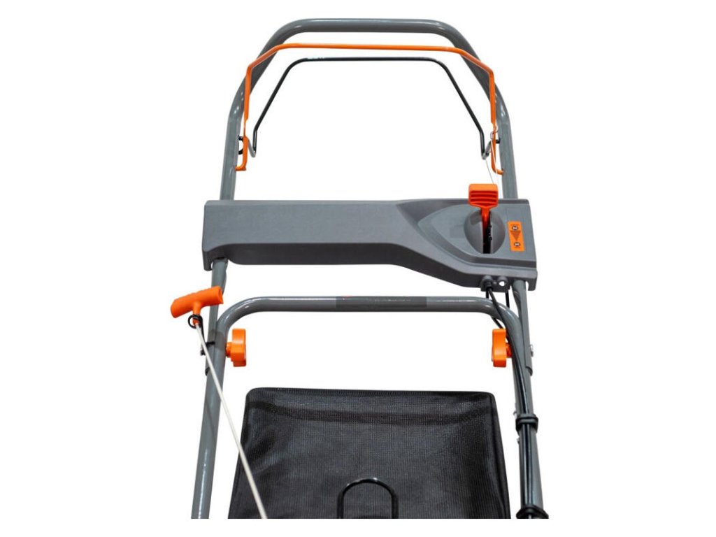 Ergonomický skladací systém rukoväte a zberného koša na trávu uľahčuje skladovanie alebo prepravu kosačky. K tomu všetkému sa pridáva kovový kryt, ktorý stroju dodáva väčšiu odolnosť.