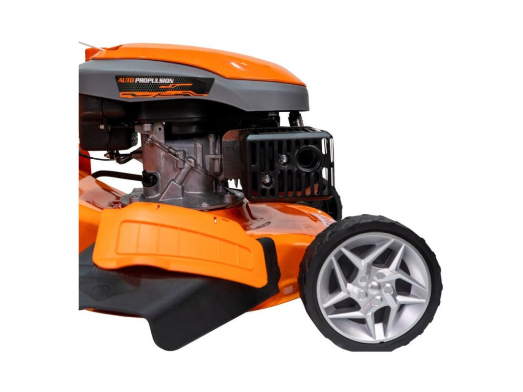 Veľký priemer kolies (19,5 cm vpredu / 27 cm vzadu) umožňuje kosiť trávnik aj v oblastiach so sklonom až 15 stupňov.