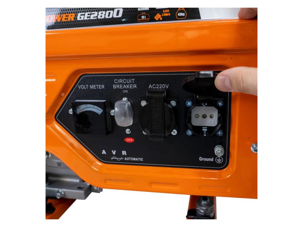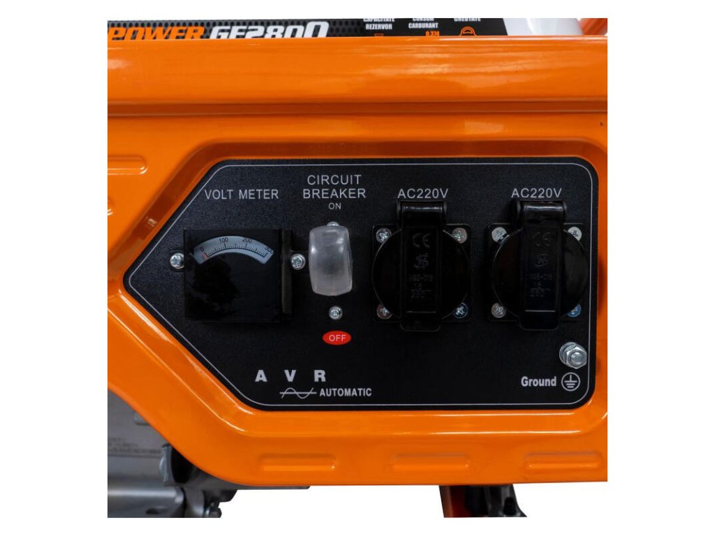 - Ovládací panel generátora energie R-Power GE2800 je navrhnutý tak, aby sa dal ľahko používať, takže na jeho ovládanie nie sú potrebné žiadne predchádzajúce skúsenosti ani špecifické zručnosti.