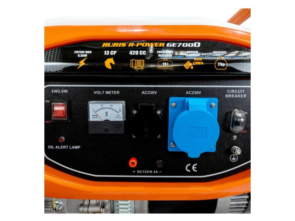 - Elektrocentrála R-Power GE7000 s maximálnym výkonom 6 500 W je malá elektráreň so schopnosťou dopĺňať alebo nahrádzať elektrinu prijatú zo siete.
