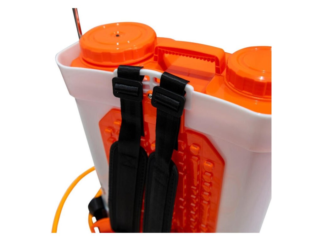 Z hľadiska pohodlia vyniká postrekovač vysokopevnostnými podpornými popruhmi, ktoré poskytujú stabilitu, odolnosť a vyvážené rozloženie hmotnosti na ramená, čím znižujú únavu počas používania.