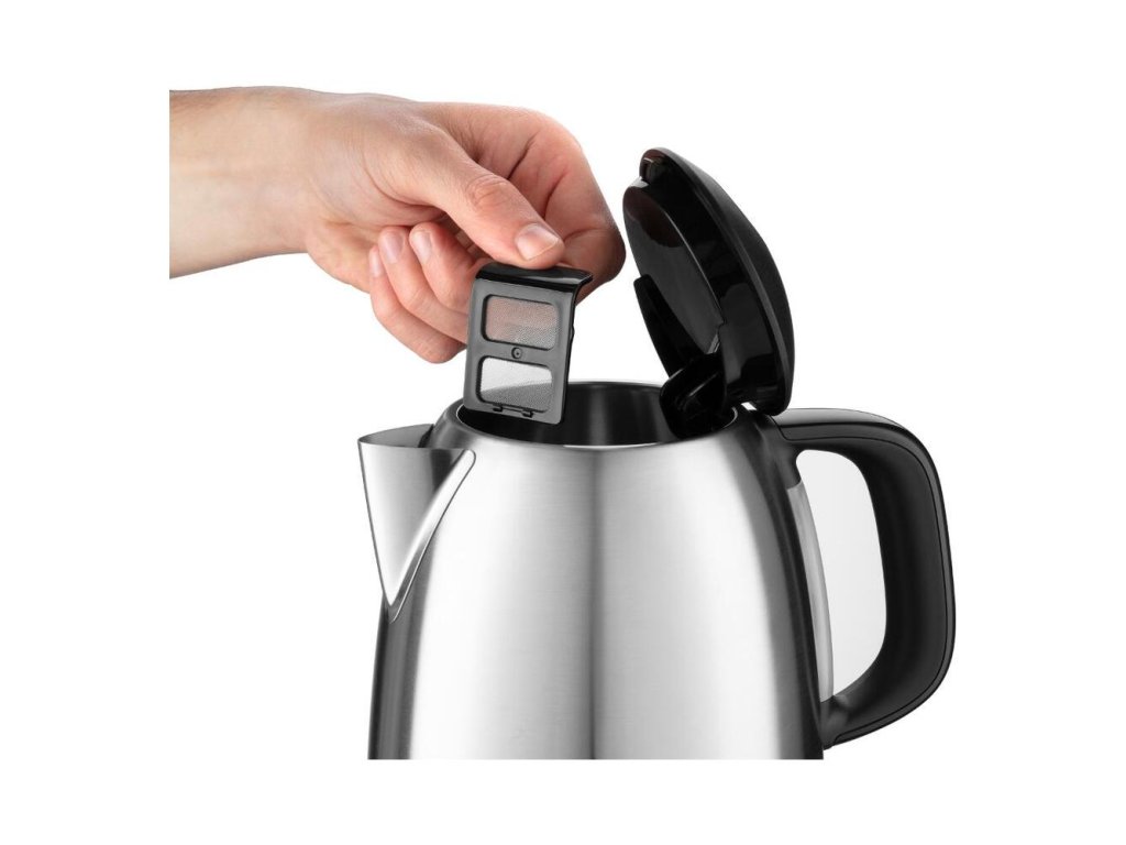 Objem: 1,7 l, Materiál: tvrdené borosilikátové sklo/nerez, Tlačidlo pre otváranie veka, Vyberateľný filter proti usadeninám, Dĺžka...