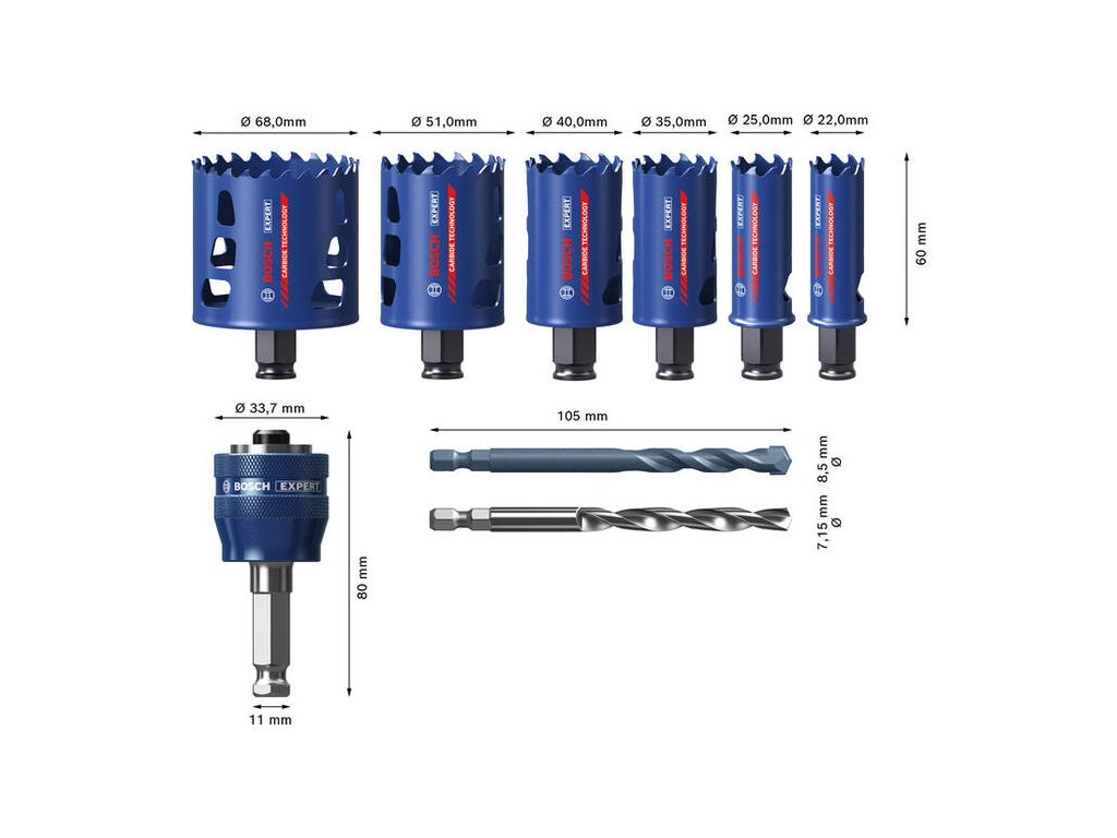 Sada dieroviek PRO Multi Material PC Plus, 9 ks Priemer dieroviek (mm): 20; 25; 32; ;38; 51; 64Sme AUTORIZOVANÝ predajca značky BOSCH