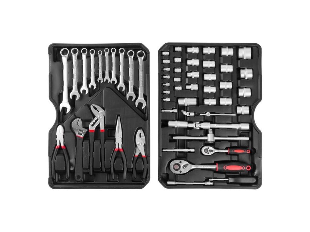 Nevyhnutnou súčasťou dielne je kvalitná 187-dielna sada náradia Strend Pro uložená v praktickom uzamýkacom kufri, v ktorom má každý diel svoje úložné miesto, preto nehrozí, že v ňom budete mať neporiadok. Obsahuje nasledujúce náradie: