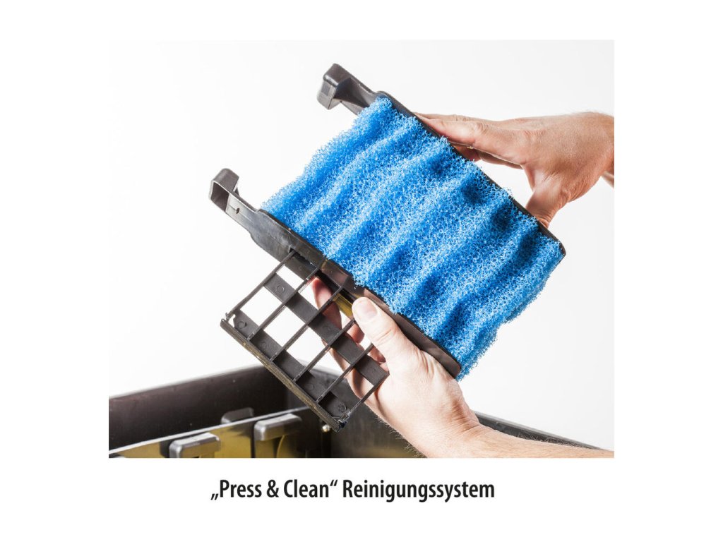Ochrana proti pretečeniu. Indikátor znečistenia (upozornenie na potrebu čistenia). Zabudovaný teplomer na veku filtrácie na zistenie teploty vody. Filtrácia obsahuje vypúšťací otvor na jednoduché čistenie a systém stlač a vyčisti. UV lampa je vybavená kontrolným otvorom na overenie funkčnosti UV lampy. Súčasťou sú filtračné médiá (filtračné špongie rôznej hrubosti, japonská rohož, domčeky na kolonizáciu baktérií) a upevňovacie prvky.