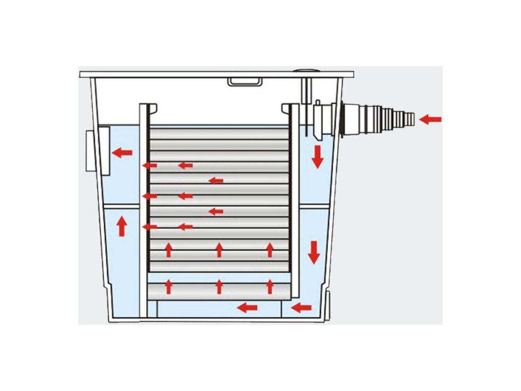 Súprava prietokovej filtrácie je určená pre jazierka do 16 m³ bez rýb, 8 m³ s rybami a 4 m³ s koi kaprami. Ide o prietokovú filtráciu s viackomorovým filtračným systémom s vysokým biologickým rozsahom, čerpadlo sa jednoducho umiestni do jazierka a pripojí sa k UV lampe umiestnenej na filtračnej jednotke, ktorá sa umiestni na brehu jazierka. Čerpadlo umiestnite na opačnú stranu filtračného systému, aby voda prirodzene cirkulovala. Voda z jazierka prúdi cez jednotlivé komory, kde sa voda mechanicky upravuje o nečistoty filtračnými hubami a zároveň sa biologicky upravuje filtračnými baktériami usadenými vo filtračných médiách. Po filtrácii sa voda vypúšťa späť do jazierka.