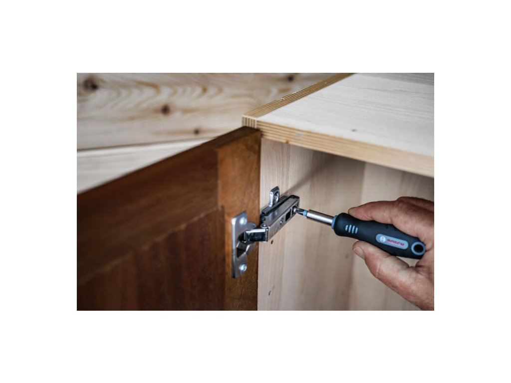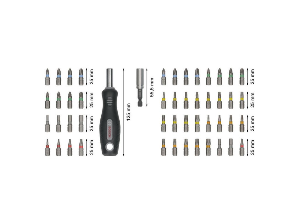 - Sada obsahuje magnetickú rukoväť skrutkovača a držiak bitov na pevné zaistenie bitov