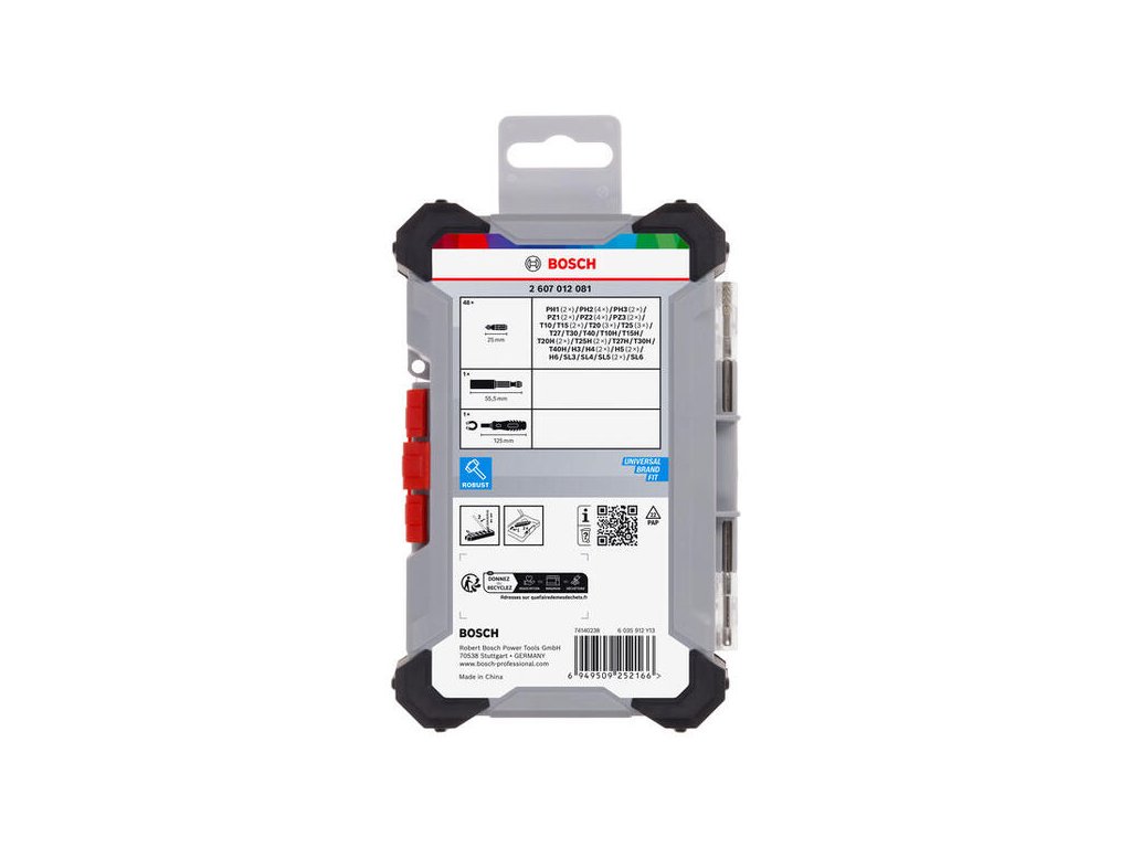 Sada Extra Hard, 50 ks, obsahuje všetky štandardné bity, ktoré potrebujete na skrutkovanie. Skrutkovacie bity sú vyrobené z tepelne upravenej ocele S2 pre tvrdosť a odolnosť voči opotrebovaniu. Sú farebne odlíšené, aby ste si dokázali ľahšie vybrať ten správny bit. Sada je uložená v robustnom kufríku Pick and Click, ktorý môžete použiť na zostavenie vlastného kufríka s náradím s prehľadne usporiadanými a chránenými bitmi. Obsahuje magnetickú rukoväť skrutkovača na bezpečné uchytenie bitov a držiak bitov, ktorý vám pomôže ľahko dokončiť vaše úlohy.