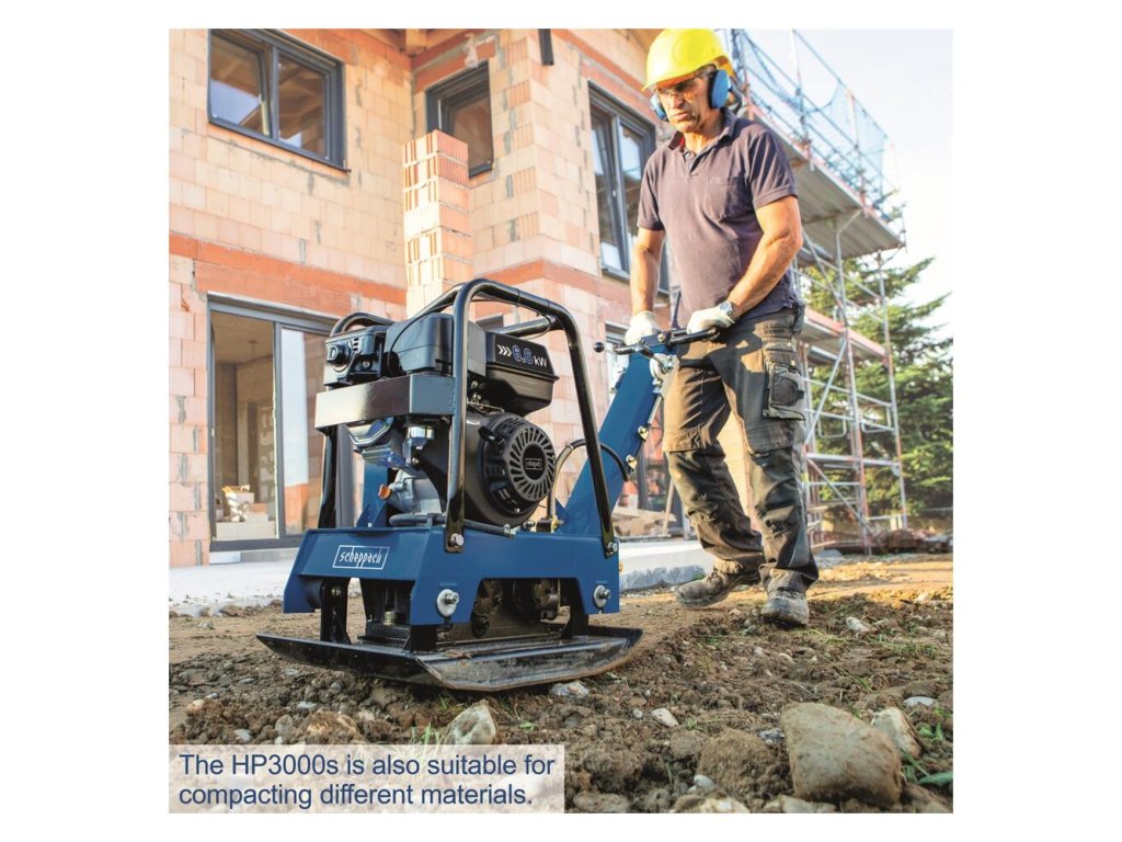 Obojsmerná vibračná doska Scheppach HP 3000 S je vďaka svojim rozmerom a parametrom všestranným a ideálnym strojom na stredne ťažké až ťažké stavebné práce, terénne úpravy, úpravu krajiny atď.Je vhodný na zhutňovanie zemín, živičných vrstiev, sypaného kameňa alebo dlažby.