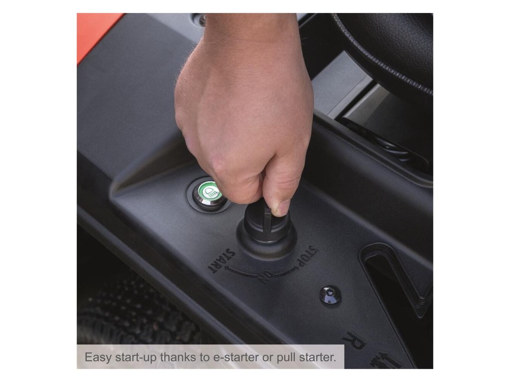 Variabilitou tento stroj prekonáva konkurenciu. Umožňuje nielen zber trávy do 150-litrového koša, ale aj bočné vyhadzovanie a mulčovanie (s použitím dodávaného deflektora). O pohon sa stará silný motor s objemom 224 cm³ a výkonom 6 HP, ktorý naštartujete pohodlne elektricky, alebo v prípade potreby klasicky ručne.