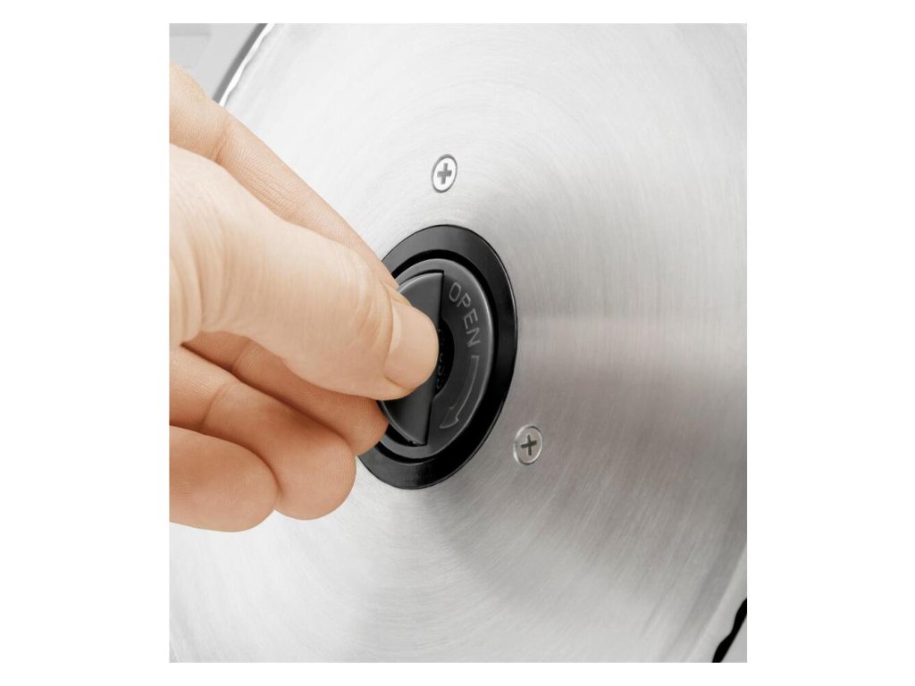 Elektrický krájač potravín s antikorovým odnímateľným krájacím kotúčom disponuje príkonom 150W. V jeho výbave nájdete otočný regulátor na plynulo nastaviteľnú šírku rezu,
