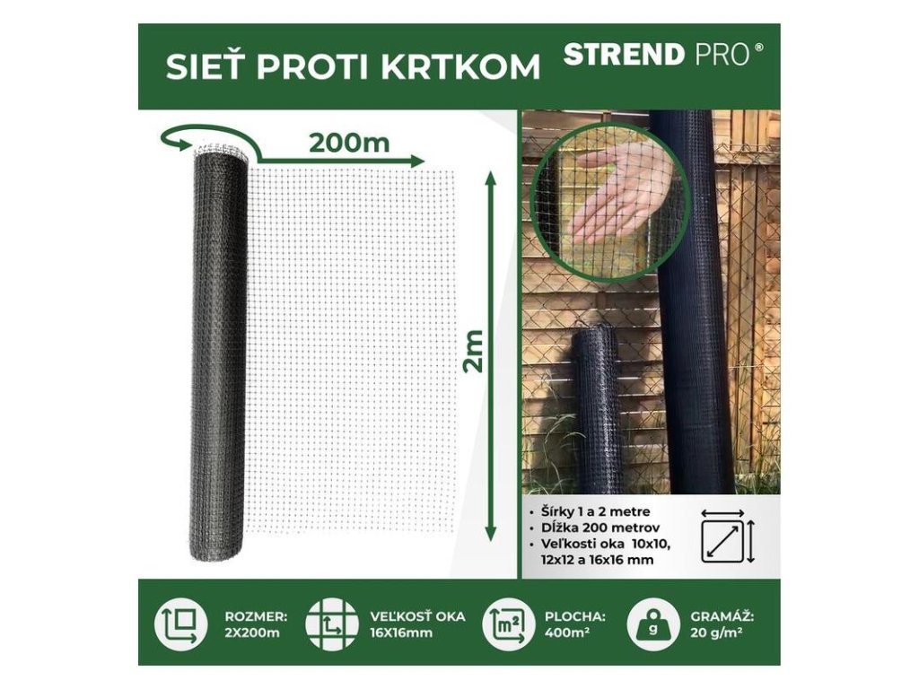 Sieť GrassGuard, 16x16 mm, 1 m, L200 m, proti krtkom