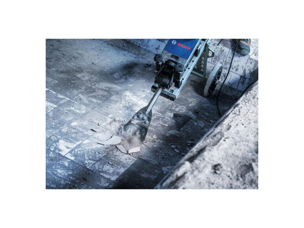 Rýchle odstraňovanie podlahových materiálov! Ste renovátor, ktorý potrebuje účinnú škrabku na odstránenie podlahových krytín? Vyskúšajte škrabku na podlahu PRO HEX 30. Pomôže vám rýchlo odstrániť všetky typy podlahových krytín. Škrabka na podlahu PRO HEX 30 na veľké zaťaženie má široké ostrie vyrobené z odolnej ocele, ktoré zaručuje jej dlhú životnosť a odstraňovanie väčšieho množstva materiálu ako menšie čepele. Na zníženie vibrácií je sekáč pripevnený k hriadeľu skrutkami a maticami. Škrabka je vhodná pre kladivo GSH 16-30. Môžete ju používať s naším vozíkom na odstraňovanie podlahových krytín GHT 130 Professional, aby ste mohli pracovať efektívne s menšou námahou.