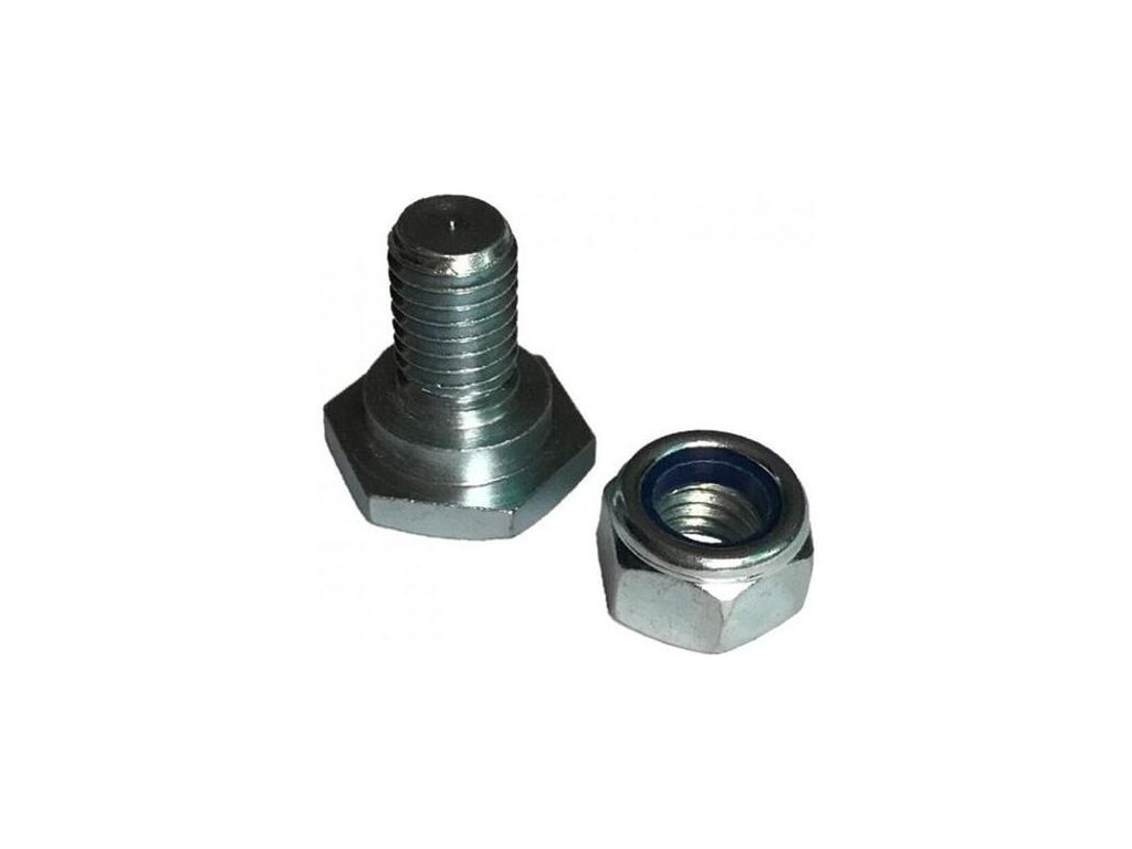 Originálna náhradná skrutka noža s maticou pre bubnové kosačky značky ETECH a RKT. Táto skrutka má špeciálne sedlo pre nôž, ktoré zamedzuje rýchlemu poškodeniu a zaisťuje, že nedôjde k uvoľneniu noža počas kosenia. Je dôležitým bezpečnostným a funkčným prvkom žacieho mechanizmu.