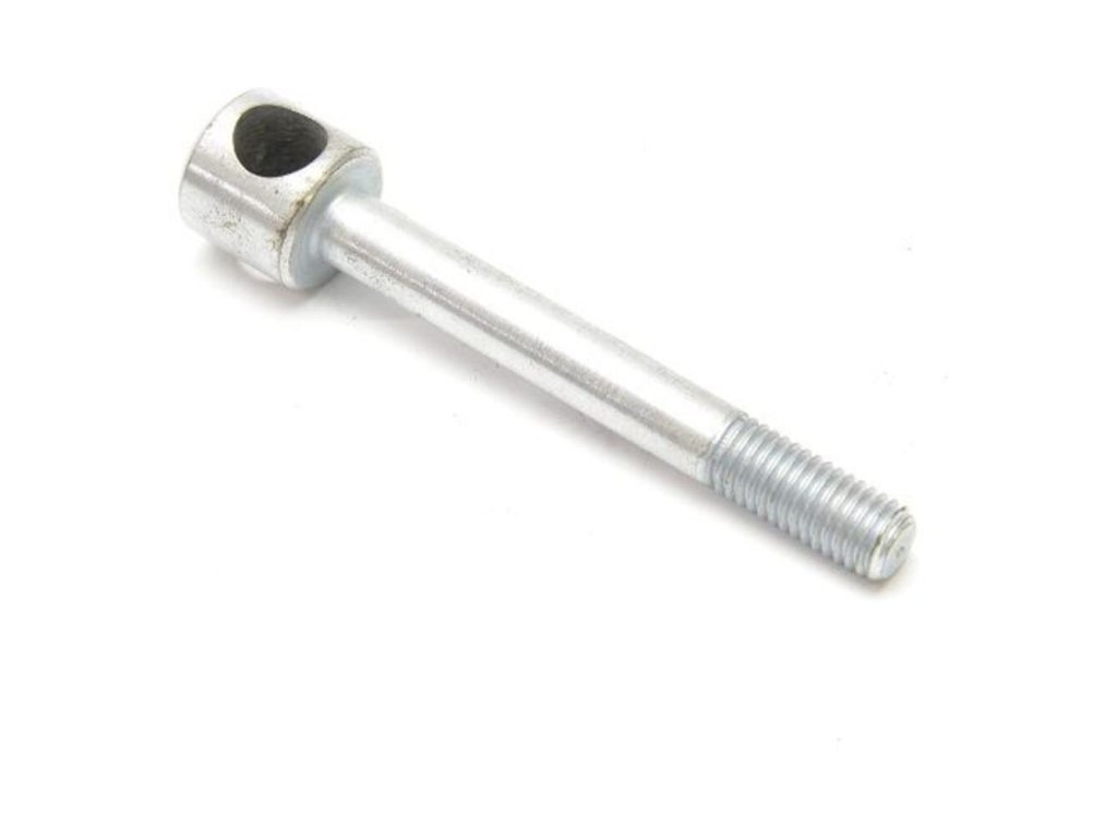 Skrutka rukovätí s otvorom SZENTKIRALY KFT je náhradný diel pre kultivátor. Umožňuje pevné uchytenie a nastavenie polohy riadidiel. Otvor slúži na zaistenie alebo upevnenie ďalších komponentov, ako sú napríklad bowdeny. Dôležitá pre ergonómiu.
