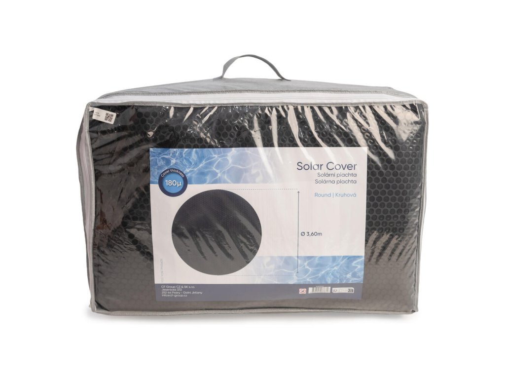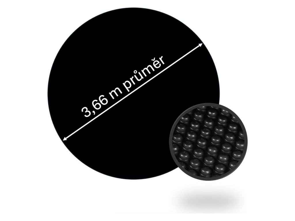Solárna plachta CF pre bazény s priemerom plochy 3,66 m. Plachta má hrúbku 180 mic a je čiernej farby. Výhodou plachty je kvalita všetkých zvarov, ktorá zaručuje dlhú životnosť plachty.