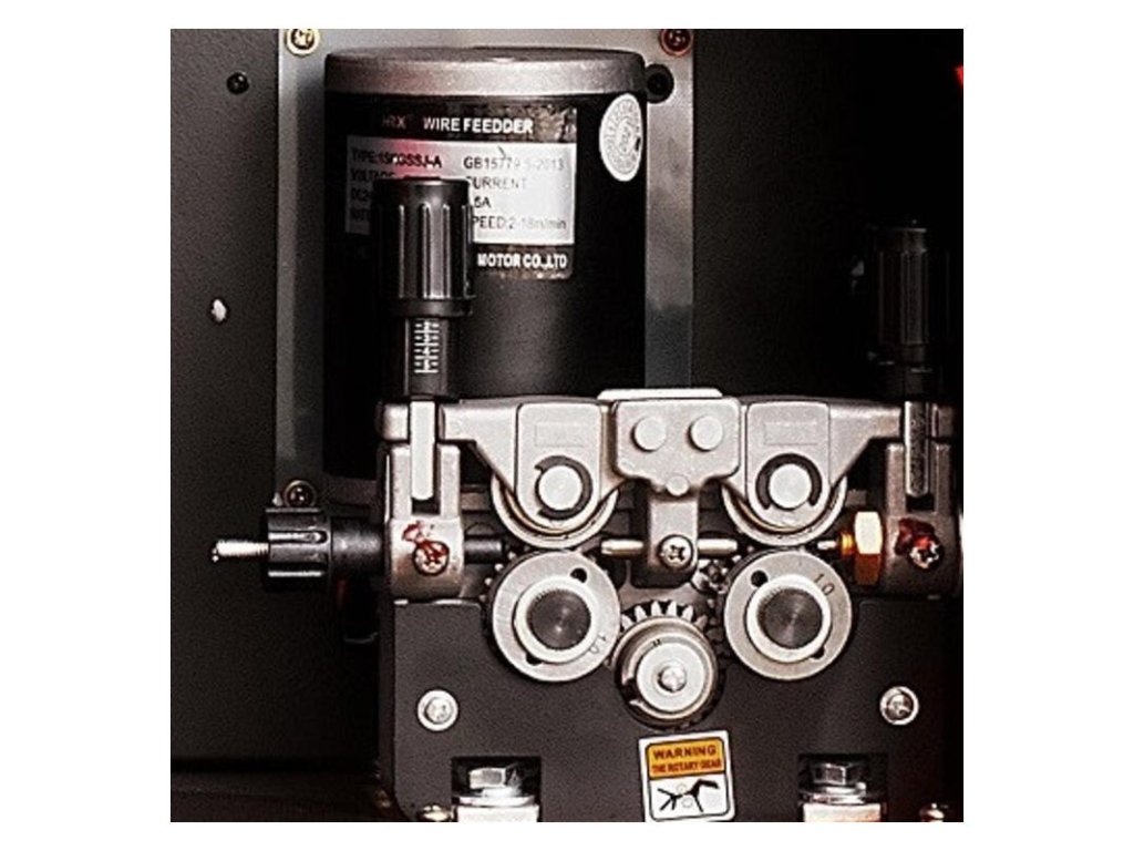 Podávač zváracieho drôtu je kovový, štvorkladkovy s kladkami majúcimi drážky typu "V" 0,8/1,0 mm.