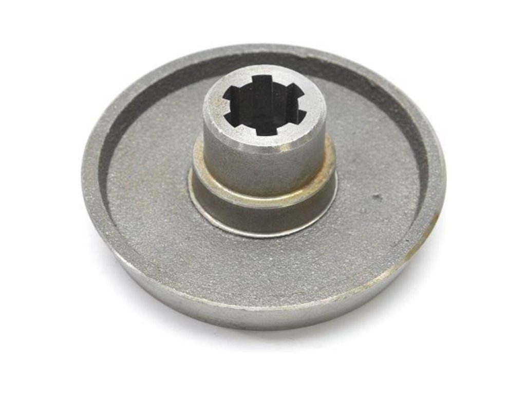 Spojka dolná prídavnej prevodovky SZENTKIRALY KFT je originálny náhradný diel pre kultivátor. Tvorí časť mechanizmu spojky a zaisťuje prenos sily na prídavnú prevodovku. S priemerom 100 mm je určená pre silnejšie modely kultivátorov. Je kľúčová pre pohon rotavátora.