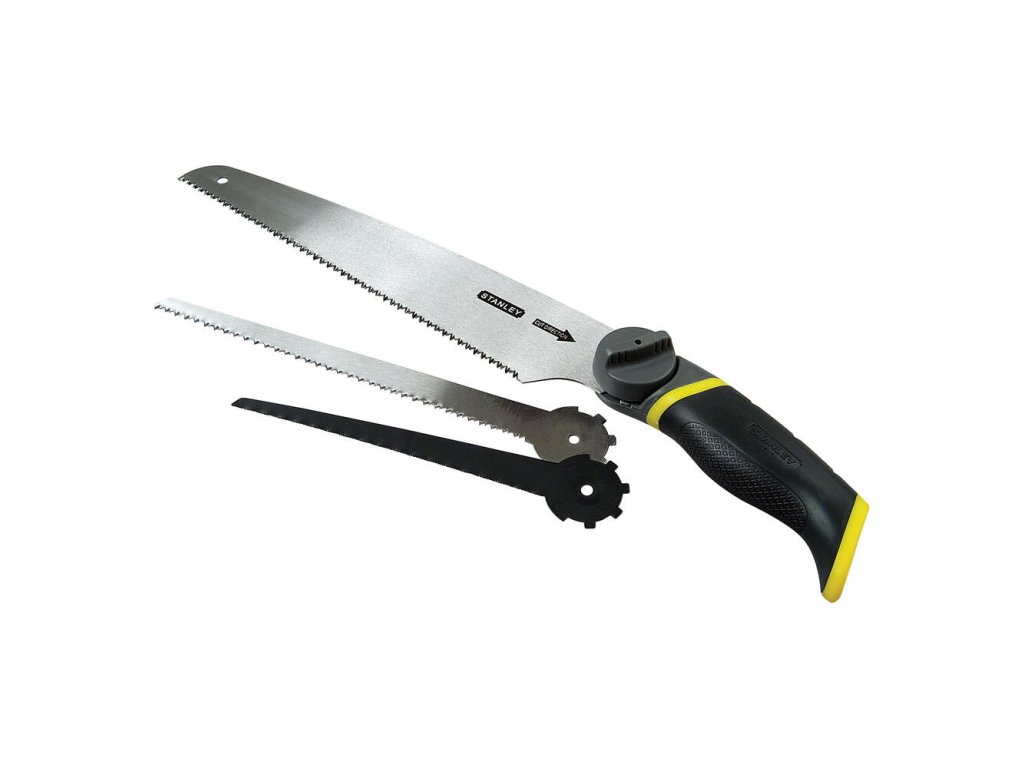 Píla Stanley 0-20-092 je multifunkčný nástroj, ktorý v jednom tele kombinuje tri pílky: univerzálnu pílu pre rezanie ťahom (250 mm, 11 TPI), pílu na kov (150 mm, 24 TPI) a pílu zlodejku (200 mm, 9 TPI). Mäkčený povrch polohovateľnej rukoväte zaisťuje pohodlie a dobré ovládanie. Výmena plátkov je veľmi jednoduchá a rýchla, bez potreby ďalšieho náradia.