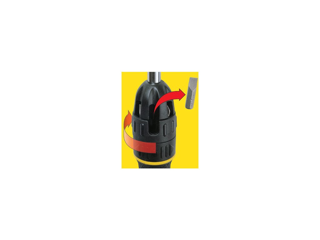 11-dielny set Stanley 0-68-010 s viacbitovým račňovým skrutkovačom je praktický nástroj s možnosťou zablokovania prepínacieho račňového mechanizmu. Trojhranná bimateriálna rukoväť s vrúbkovaním DynaGrip zaisťuje pohodlné držanie. Bity sú uložené priamo v rukoväti s pružinovým mechanizmom pre ľahký prístup a magnet v drieku umožňuje ich rýchlu výmenu.
