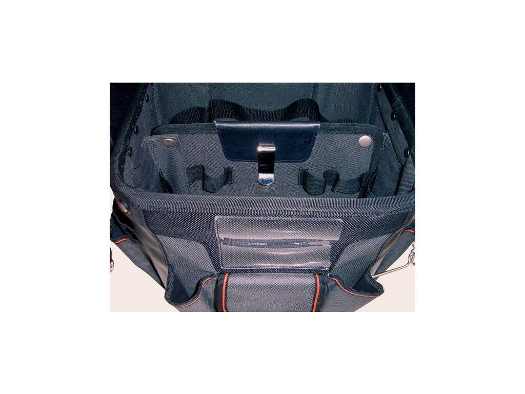 - Vyberateľná rozdeľovacia stredová prepážka so sponou pre pripevnenie na opasok umožňuje uloženie a samostatnú manipuláciu s najčastejšie používaným náradím.