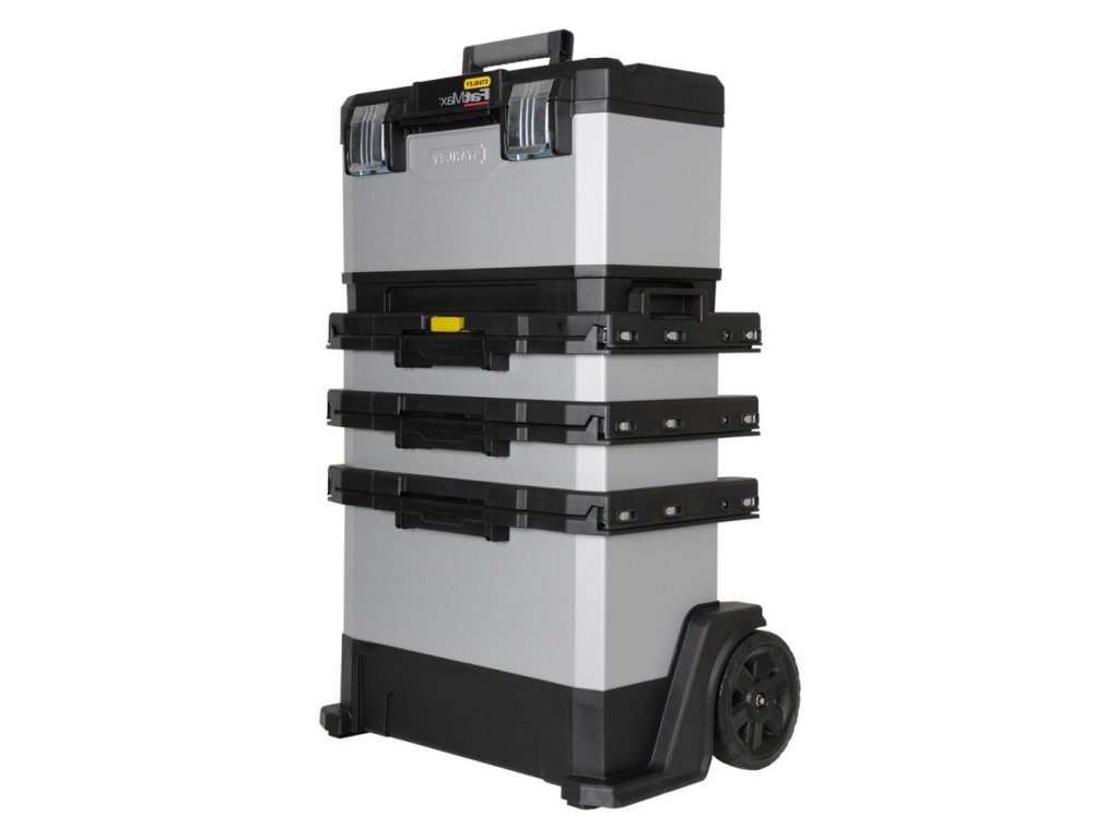 Pojazdný montážny box STANLEY 1-95-622 z radu FatMax je profesionálne riešenie s odolnou kovoplastovou konštrukciou. Ponúka vrchný oddeliteľný box, dve hlboké zásuvky s guličkovými ložiskami a priestranný spodný diel pre veľké náradie. Veľké kolieska zaisťujú ľahkú mobilitu.