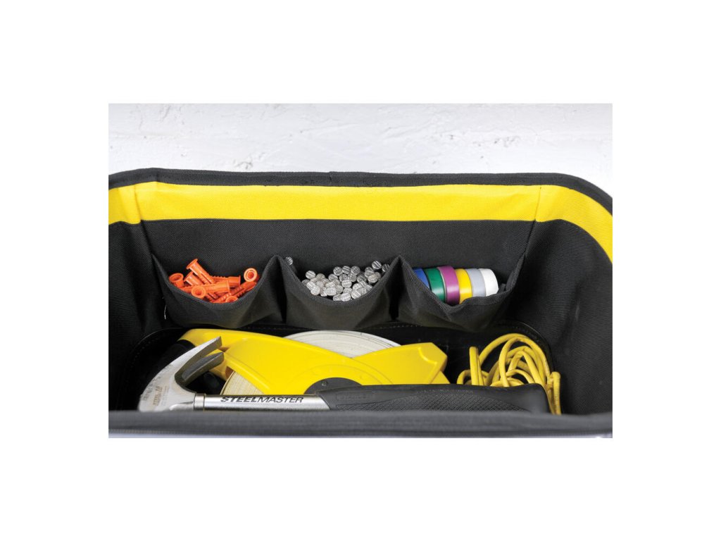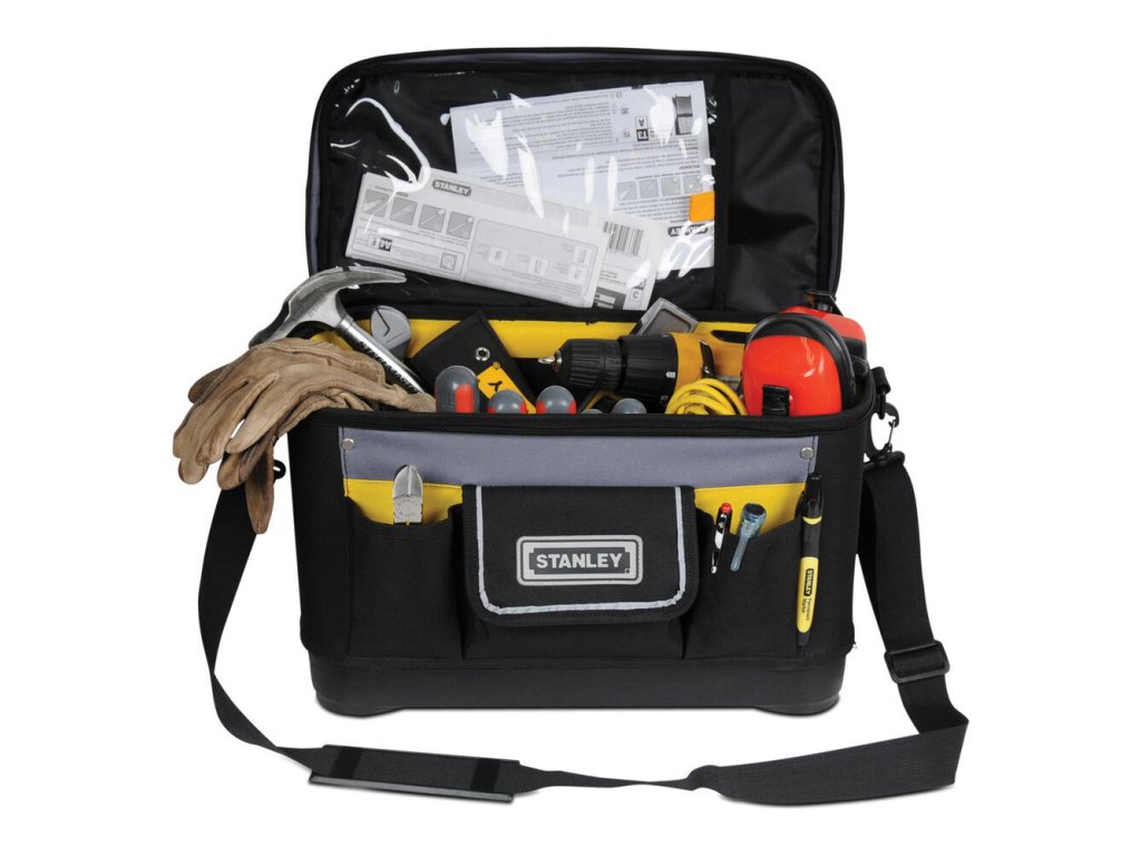 Viacúčelová brašna STANLEY 1-96-193 je vyrobená z veľmi odolného materiálu so zosilnenými rohmi, čo zaručuje jej dlhú životnosť. Mnoho vnútorných a vonkajších vreciek pomáha k efektívnej organizácii náradia. Pevná plastová základňa chráni obsah pred vlhkosťou.