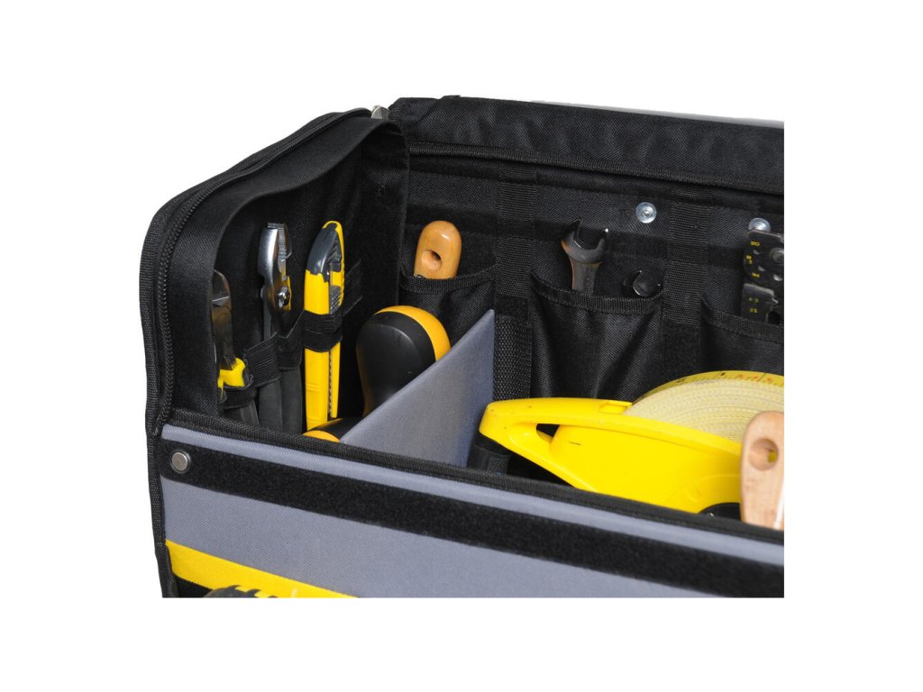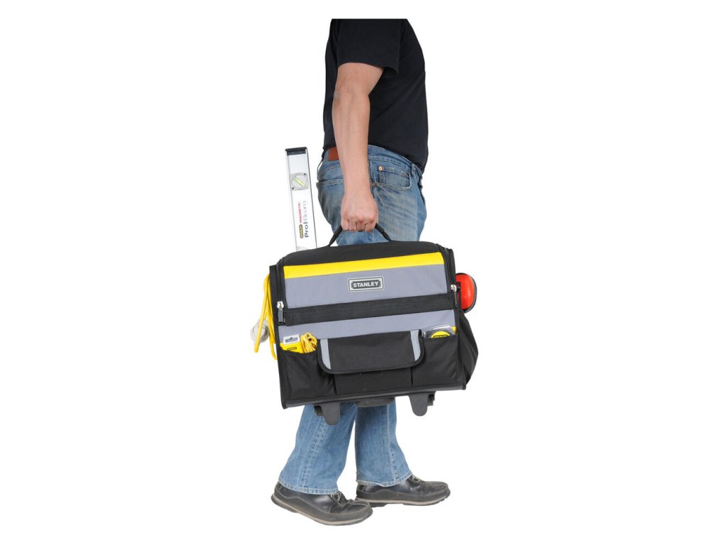 Brašna na náradie STANLEY 1-97-515 je navrhnutá pre ľahkú prepravu vďaka robustným kolieskam a teleskopickej rukoväti. Je vyrobená z pevnej a odolnej tkaniny s hustotou 6000 vlákien, čo zaručuje dlhú životnosť aj pri náročnom používaní. Mnohé vnútorné a vonkajšie vrecká umožňujú skvelú organizáciu obsahu.