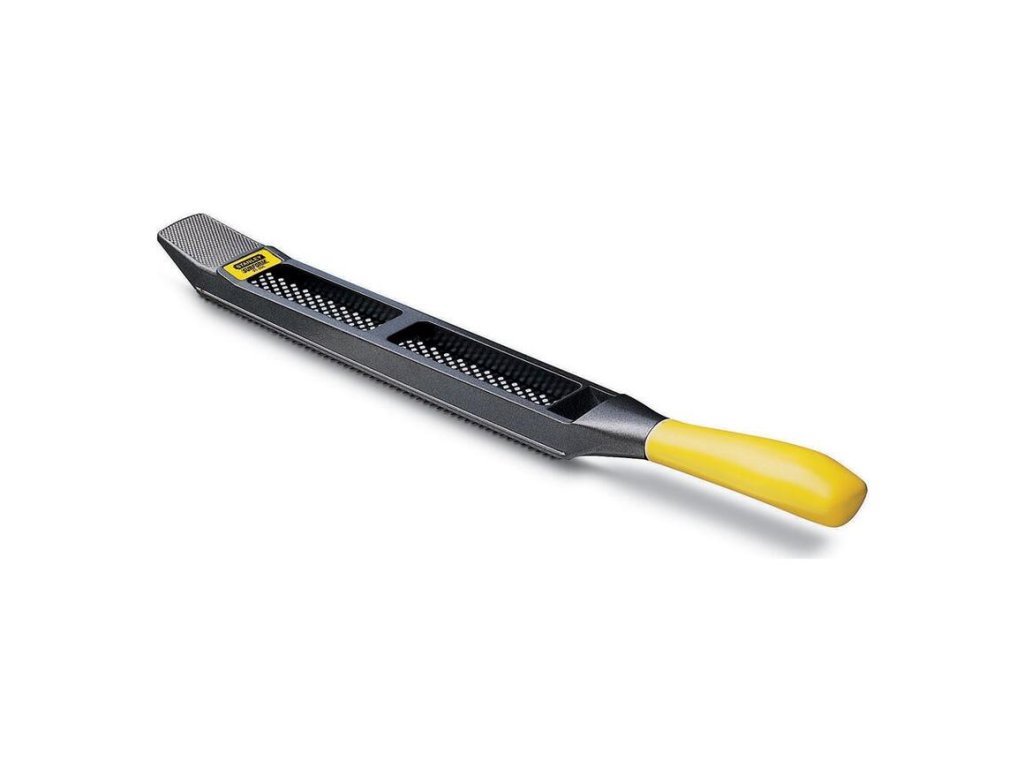 Kovový rašpľový hoblík Stanley 5-21-295 Surform s dĺžkou 440 mm a robustnou kovovou konštrukciou je schopný nahradiť niekoľko klasických typov rašplí. Je ideálny pre tvarovanie, rovnanie a čistenie povrchov. Vroubkovaná predná vodiaca rukoväť zaisťuje vysokú presnosť. Je dodávaný so štandardným plátkom 21-293 a umožňuje prácu ťahom aj tlakom.