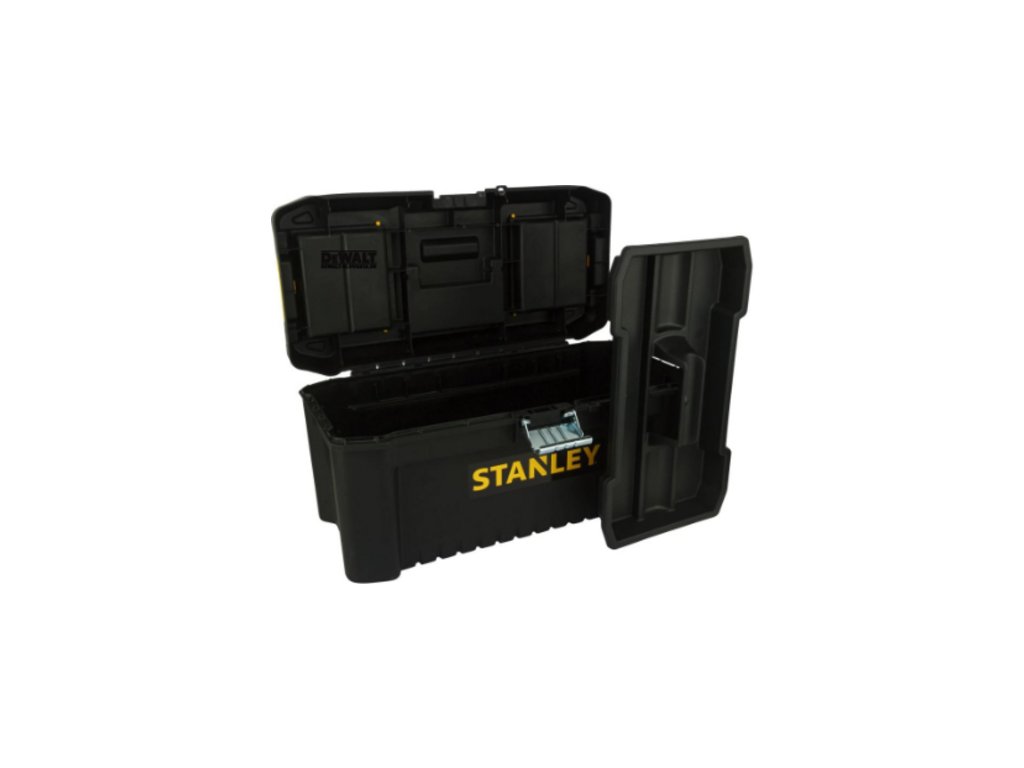 Univerzálny **box na náradie Stanley s organizérom** s dĺžkou 48 cm je vhodný pre základné sady náradia. Odnímateľný horný organizér slúži na drobné diely, zatiaľ čo dlhá rukoväť a ľahká konštrukcia uľahčujú prenášanie.