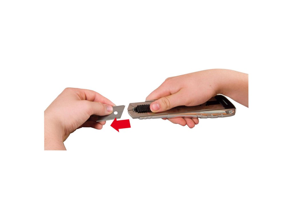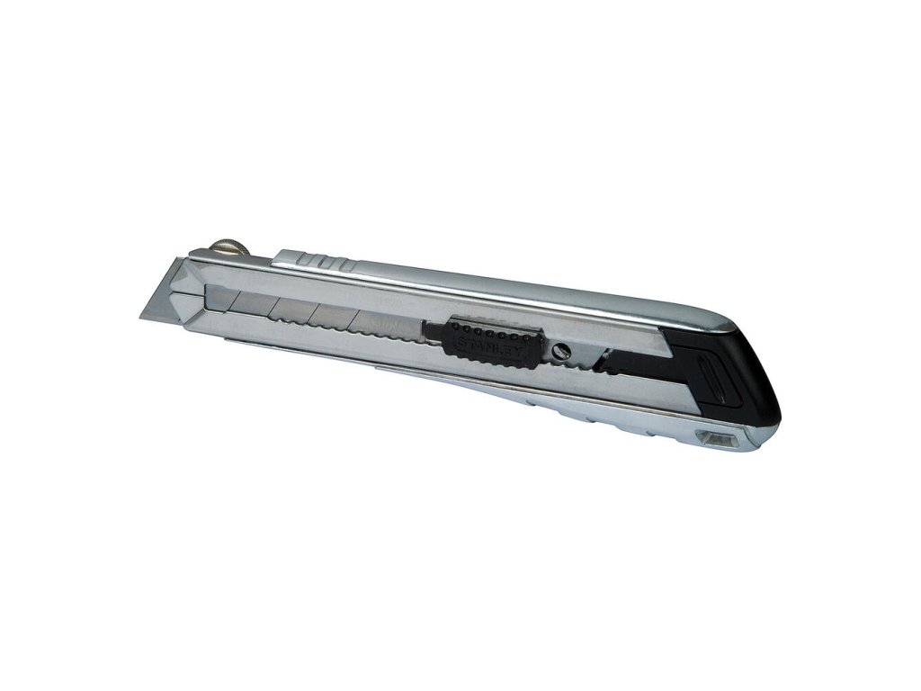 Odlamovací nôž Stanley FATMAX Pro je určený pre profesionálne použitie. Disponuje automatickým systémom výmeny čepele a integrovaným zásobníkom až na 4 výmenné čepele. Bezpečnosť a presnosť zaisťuje systém samosvorného posuvu čepelí a blokovacie tlačidlo.