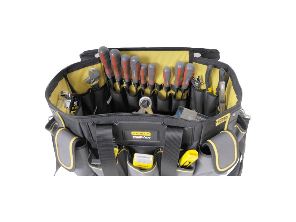 Brašna Stanley FMST1-70749 FatMax 18" je navrhnutá s ohľadom na maximálny úložný priestor vďaka oválnej hornej symetrickej konštrukcii. Je vyrobená z odolných materiálov, ktoré zaručujú ochranu náradia. Vstrekované dno z polypropylénu chráni pred vlhkosťou. Zvislé úložné vrecká a ergonomický dizajn s popruhom cez rameno zaisťujú pohodlné a rýchle prenášanie.