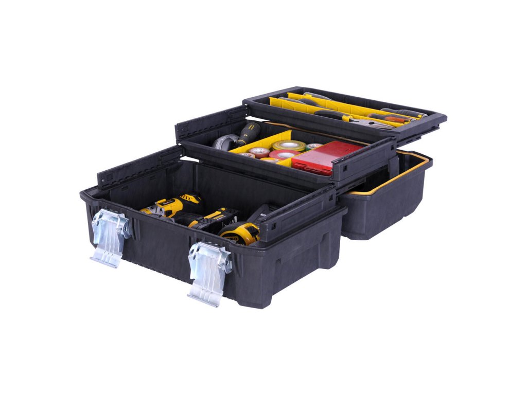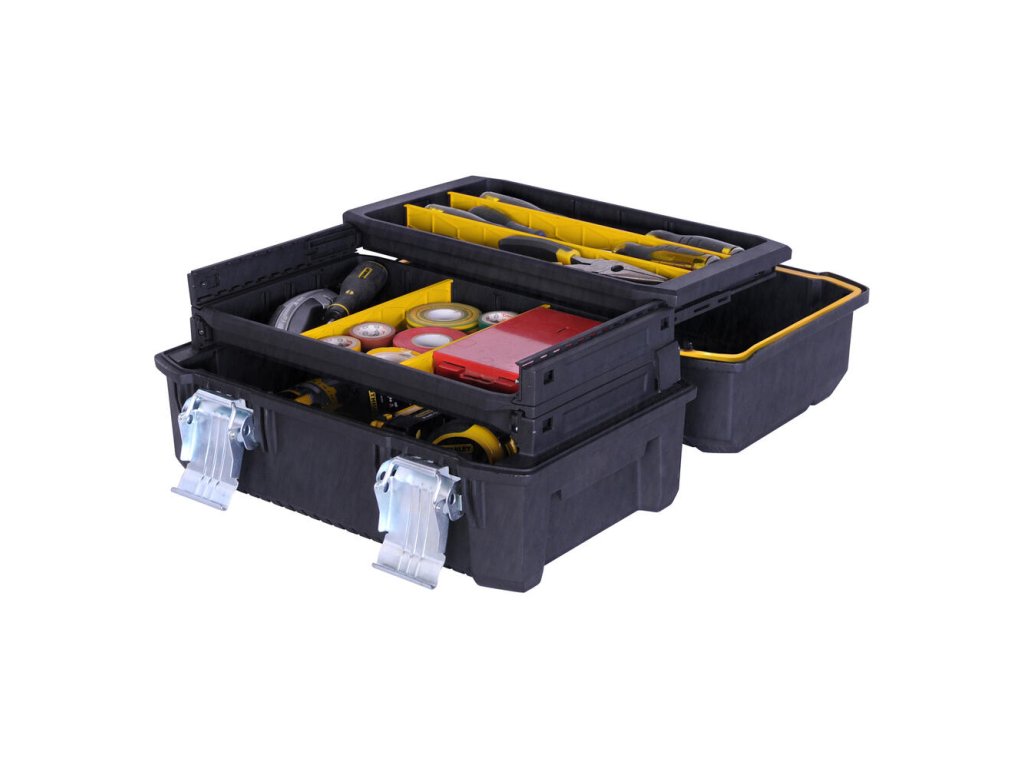 Box Stanley FMST1-71219 FatMax 18" Cantilever je extra odolné úložné riešenie. Je vode a prachu odolný s triedou ochrany IP53. Má kovové koľajnice pre ľahké vysunutie jednotlivých častí boxu. Spodná časť je vhodná pre uloženie elektrického náradia. Veľké kovové pracky s okami umožňujú uzamknutie boxu visiacim zámkom.