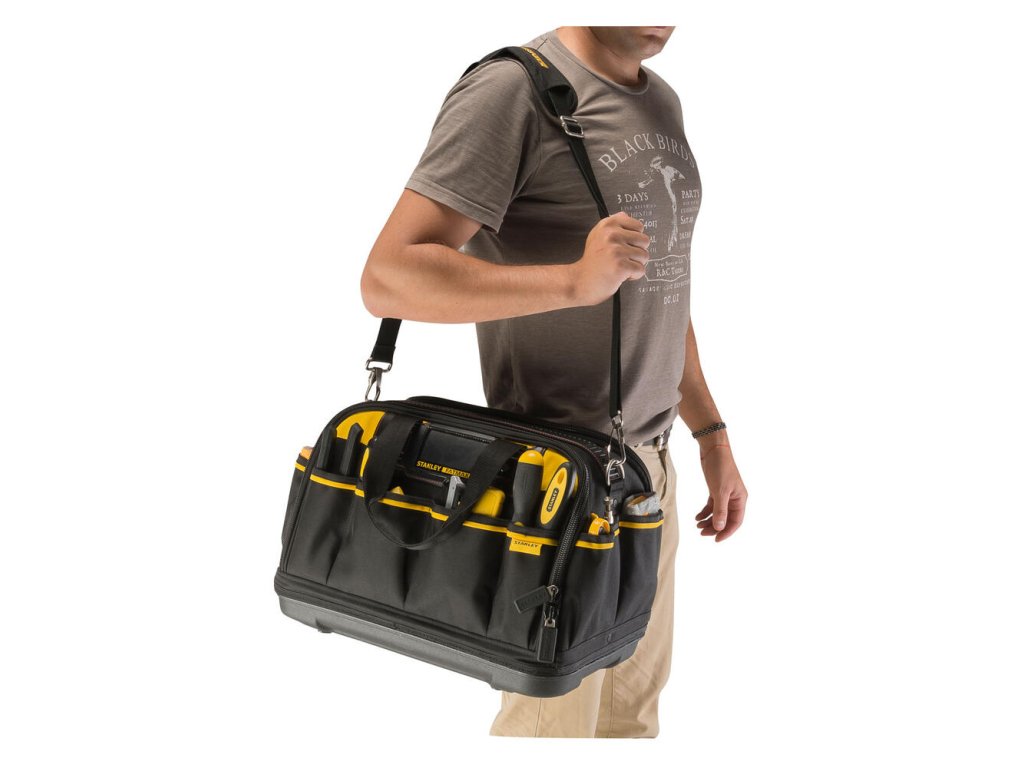 Viacúčelová brašna Stanley FMST1-73607 FatMax je ideálna pre prehľadné uloženie a prenášanie náradia. Poskytuje výborný prístup k uloženému náradiu a má veľký úložný priestor, napríklad pre elektrické náradie. Vstrekované polypropylénové dno chráni obsah pred vlhkosťou a znečistením. Ergonomický dizajn s ramenným popruhom zaisťuje pohodlné prenášanie.