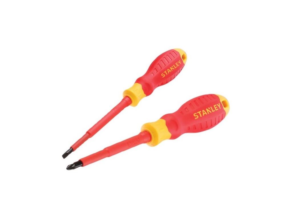 Sada 2 izolovaných skrutkovačov STANLEY VDE je nevyhnutná pre každého elektrikára. Skrutkovače sú testované a certifikované podľa normy VDE, čo zaručuje bezpečnú prácu s elektrickým napätím do 1000 V.