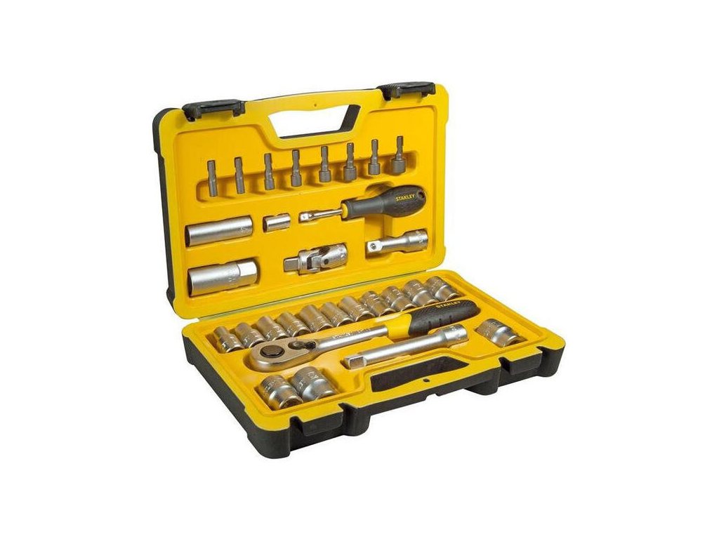 Gola sada Stanley STHT0-73929 obsahuje 30 kľúčových dielov s upínacím rozmerom 1/2", ideálna pre stredne náročné montážne a demontážne práce. Račňa s 54 zubami poskytuje spoľahlivý a jemný chod. Sada obsahuje široký rozsah šesťhranných hlavíc, univerzálny kardan a hlavice na sviečky, všetko prehľadne uložené v odolnom kufri.