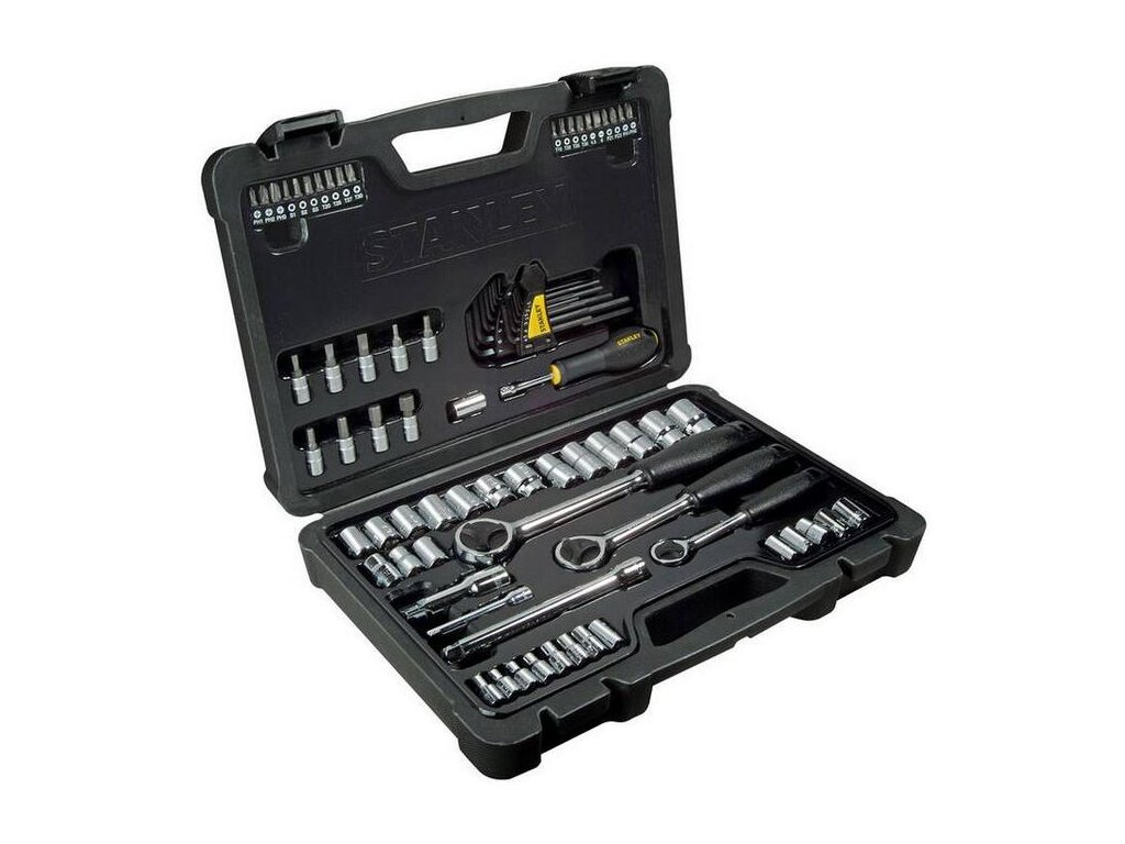 Gola sada Stanley STHT0-73930 je komplexná 80-dielna súprava, ktorá pokrýva najčastejšie používané rozmery a typy hlavíc a bitov v troch rôznych upínacích rozmeroch (1/4", 3/8", 1/2"). Kvalitné spracovanie a prehľadné usporiadanie v plastovom kufri z nej robia univerzálne náradie pre každého profesionála aj domáceho majstra.