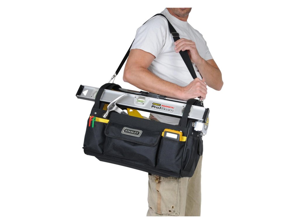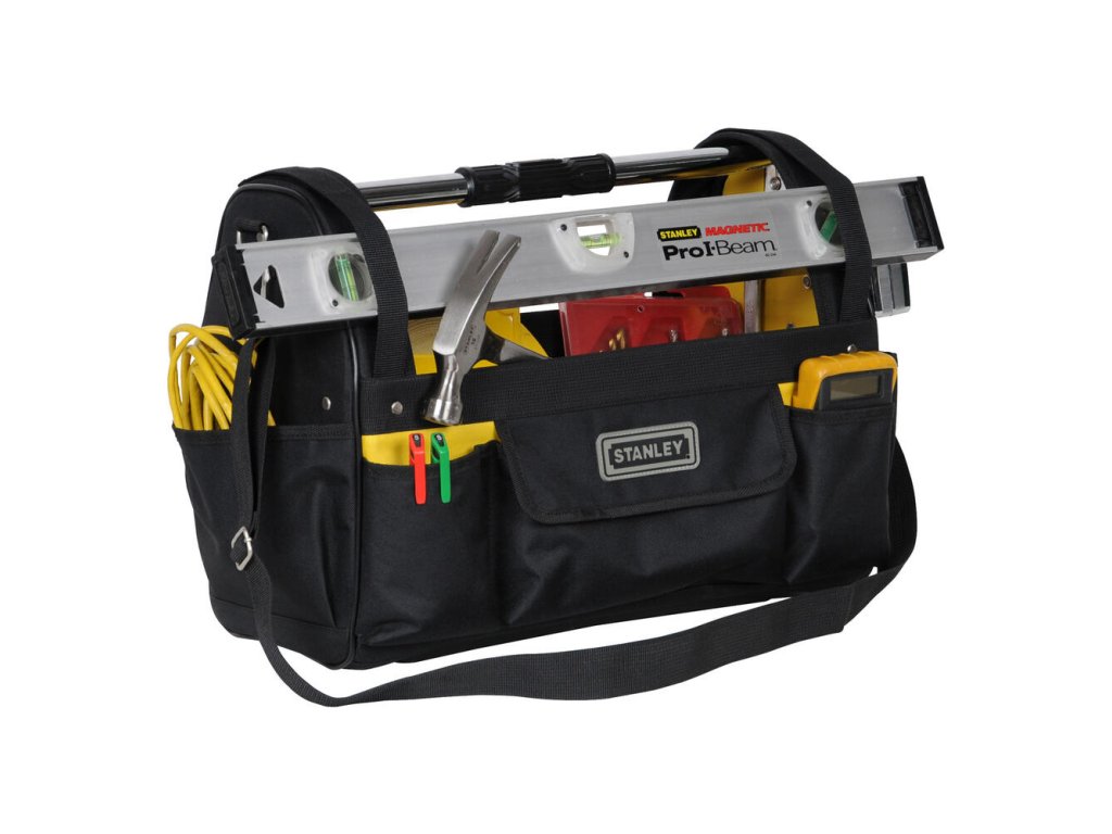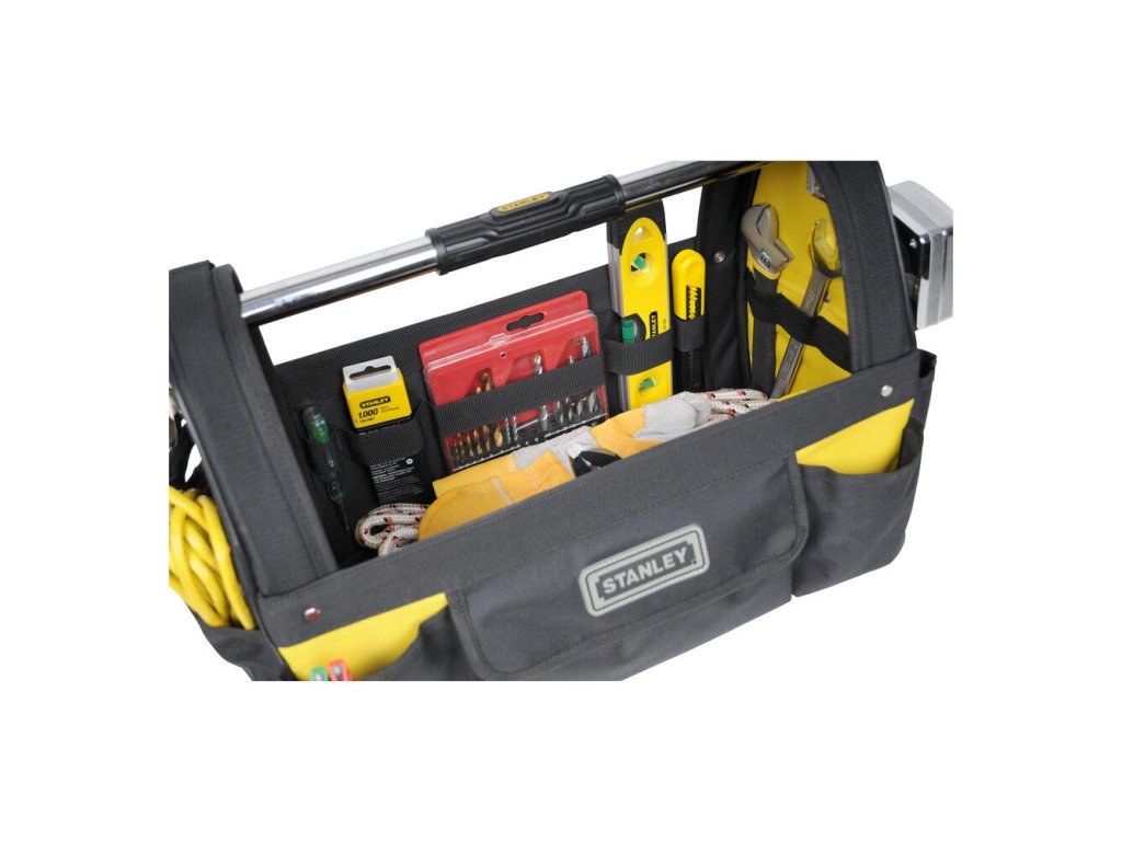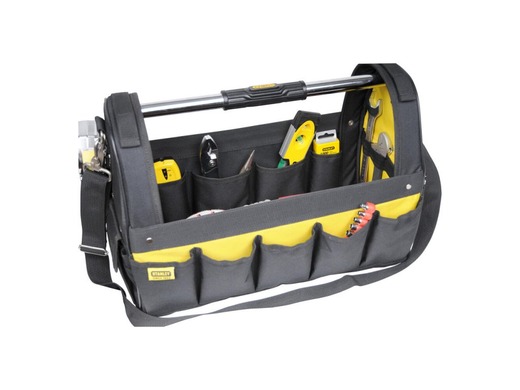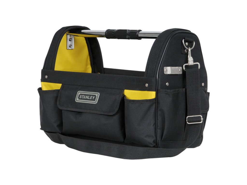 Otvorená prepravka Stanley STST1-70712 s dĺžkou 18" je navrhnutá pre jednoduchý prístup k náradiu. Je vyrobená z pevnej a odolnej tkaniny, pričom pevné vodeodolné plastové dno chráni obsah pred vlhkosťou. Prepravka je vybavená veľmi pevnou rukoväťou s gumovým opláštením a polstrovaným ramenným popruhom.