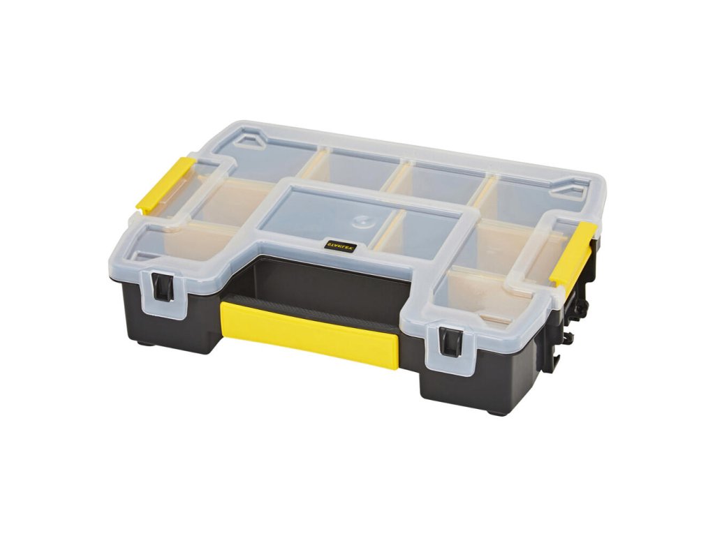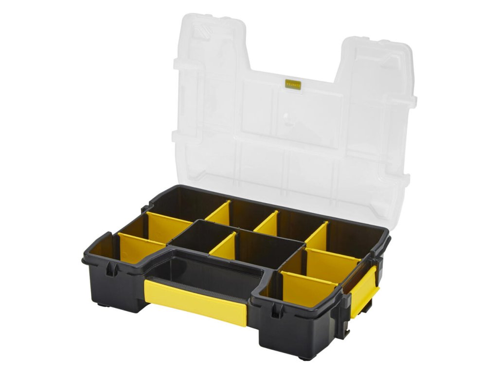 Organizér Stanley STST1-70720 SortMaster Mini je kompaktné a praktické riešenie pre uloženie drobného materiálu. Umožňuje stohovanie až troch organizérov na seba a prestaviteľné rozdeľovače zväčšujú variabilitu priehradiek. Veko s drážkami zabraňuje premiesťovaniu obsahu.