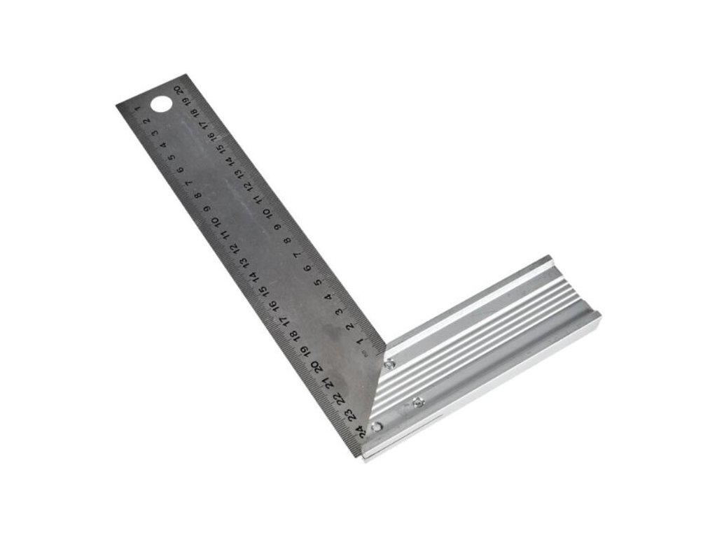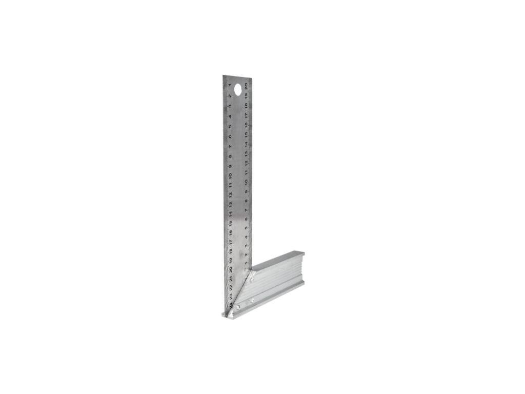 Tesársky uholník/pokosník Stanley (250 x 140 mm) má dobre viditeľnú tlačenú stupnicu v mm na nerezovej oceliRýhovaná hliníková pätka je pevne pripevnená 3 nitmi pre presné meranie. Uholník umožňuje vyznačiť uhly 90° a 45° .