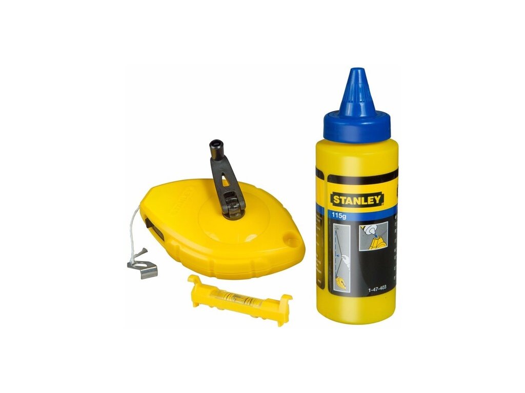 Základná značkovacia sada Stanley. Sada obsahuje značkovaciu šnúru (30 m) v ABS tele, prášok pre značkovaciu šnúru (115 g) a praktickú vodováhu na šnúru