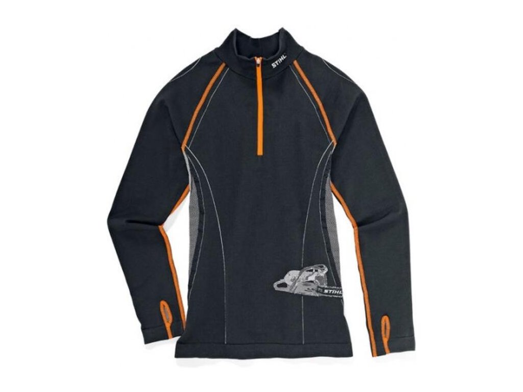 Špeciálny dizajn s motívom píly v čiernej farbe pre prácu v teréne bez švov pre ochranu a optimálnu teplotu tela. Výborná distribúcia vlhkosti a rýchloschnúce vlastnosti vďaka vodeodolnému materálu zvonku a vlhkosť pohlcujúcemu materiálu vo vnútri. S molekulami striebra pre neutralizáciu pachov. Rebrovaná štruktúra výplne na pleciach, lakťoch, predlaktí, kolenách a holeni. Bunda na zips, remienky na palce. Zadná časť nohavíc má funkciu zachytávania tepla.