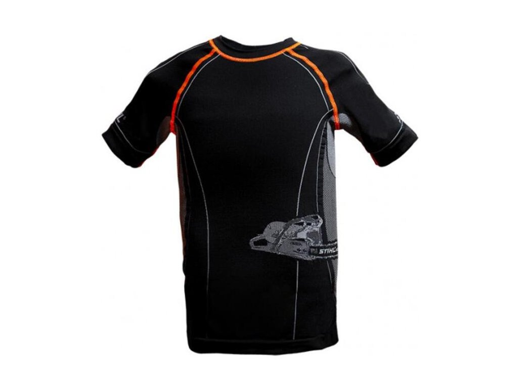 Špeciálny dizajn s motívom píly v čiernej farbe pre prácu v teréne bez švov pre ochranu a optimálnu teplotu tela. Výborná distribúcia vlhkosti a rýchloschnúce vlastnosti vďaka vodeodolnému materálu zvonku a vlhkosť pohlcujúcemu materiálu vo vnútri. S molekulami striebra pre neutralizáciu pachov. Rebrovaná štruktúra výplne na pleciach, lakťoch, predlaktí, kolenách a holeni. Bunda na zips, remienky na palce. Zadná časť nohavíc má funkciu zachytávania tepla.