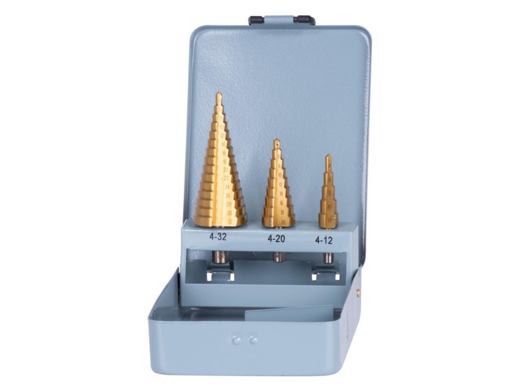 - Sada stupňovitých vrtákov Strend Pro by nemala chýbať vo výbave profesionálnych remeselníkov, ale aj domácich kutilov.