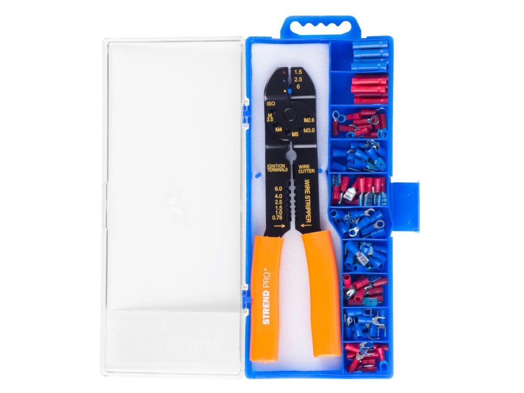 Strend Pro Kliešte AWS 338, odblankovacie + sada 230 ks koncoviek, slúžia na strihanie, odizolovanie a krimpovanie.