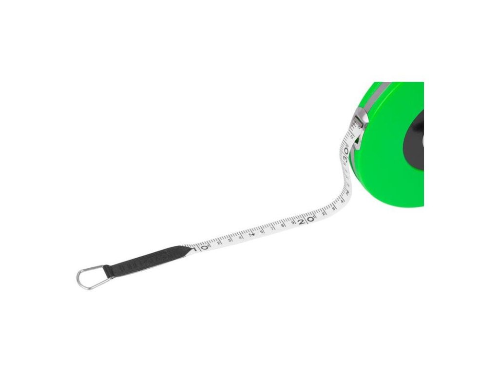 - Pásmo sa skladá zo stabilného plastového puzdra s vyklápacou navíjacou kľučkou a laminátového meracieho pásu odolávajúceho poveternostným vplyvom.